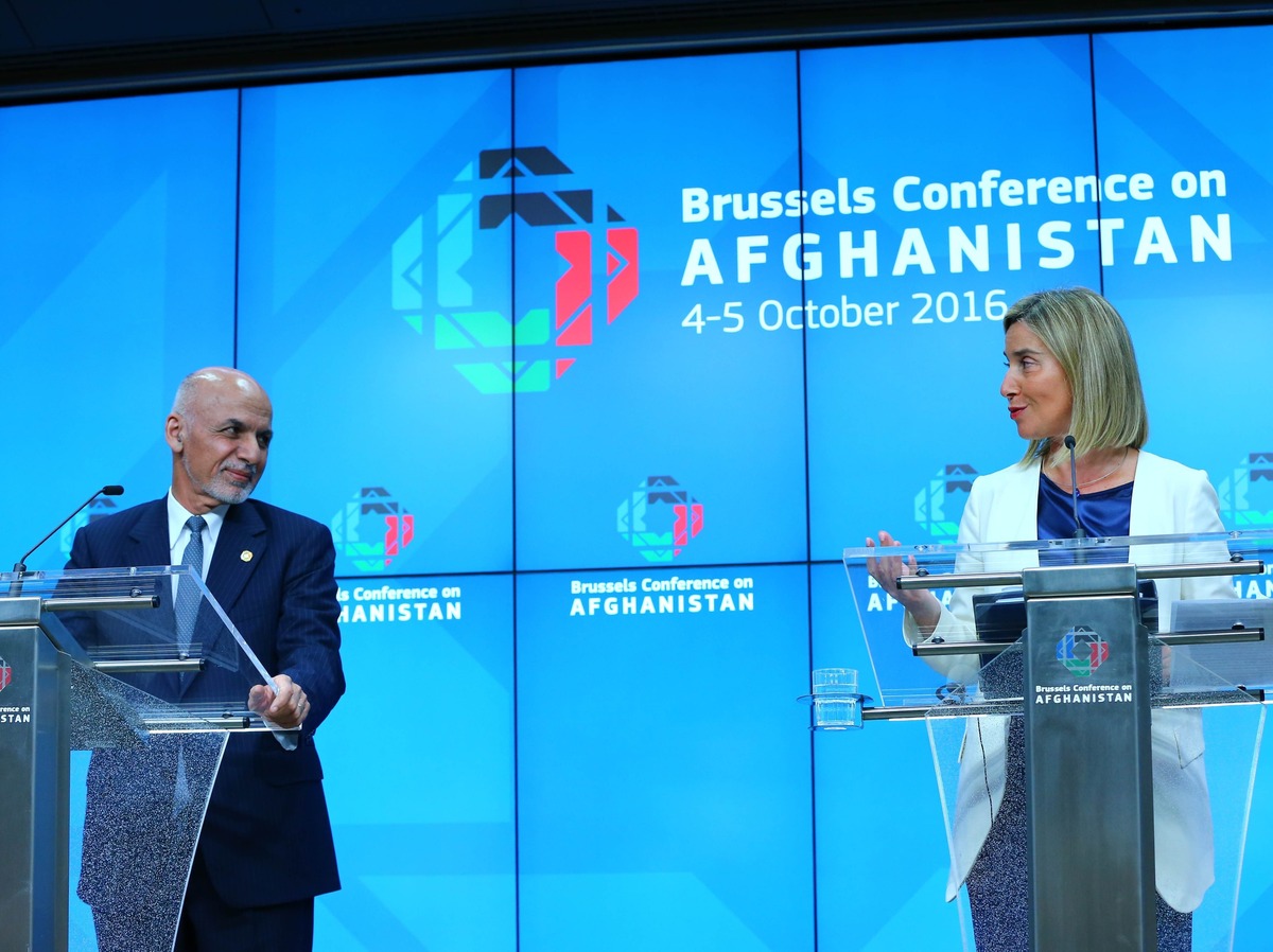 Afghan President Ashraf Ghani, left, and Federica Mogherini, high representative of the European Union at a press conference on Wednesday after a two-day conference on Afghanistan.
