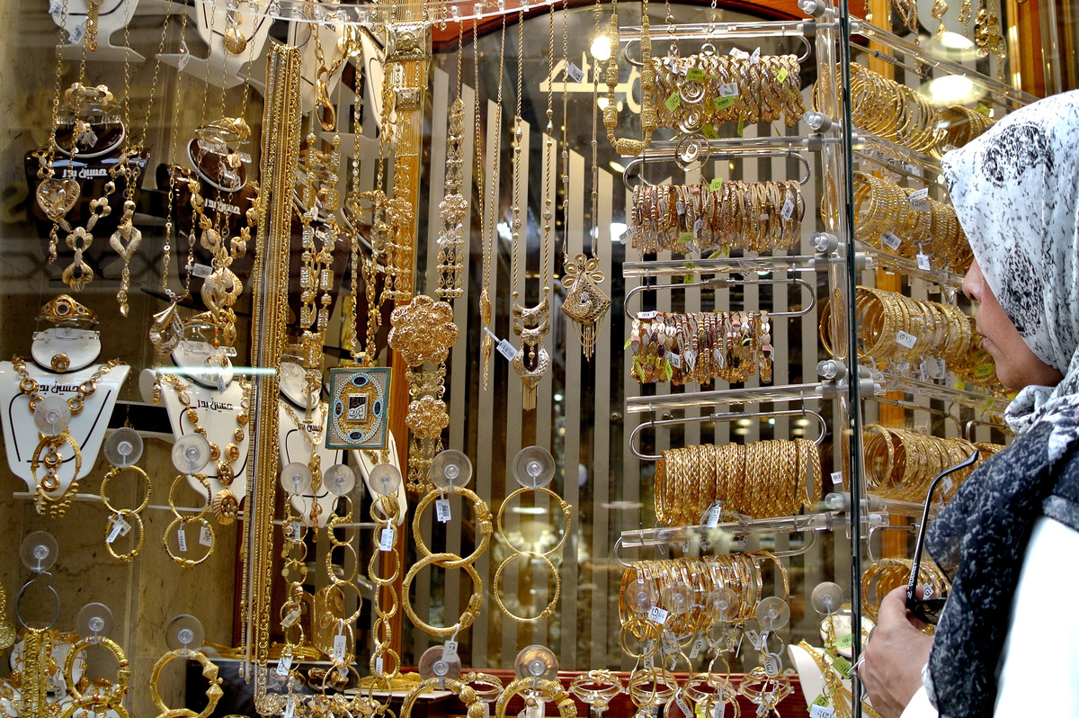 A woman looks at gold jewelry in Cairo's Khan al-Khalili market. Gold jewelry is traditionally given to a bride in Egypt as part of a marriage agreement. Many young Egyptians have found they can't afford to get married due to the soaring price of gold and rising costs of basic items.